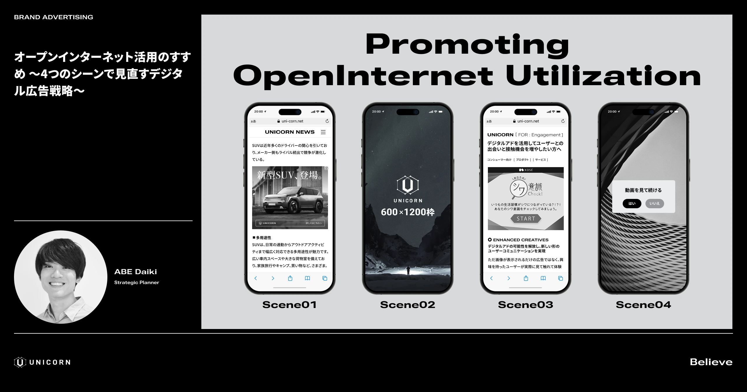 広告が、もっと自由で影響力のある存在へと生まれ変わるために。UNICORNは未来の新しい指針となっていきます。