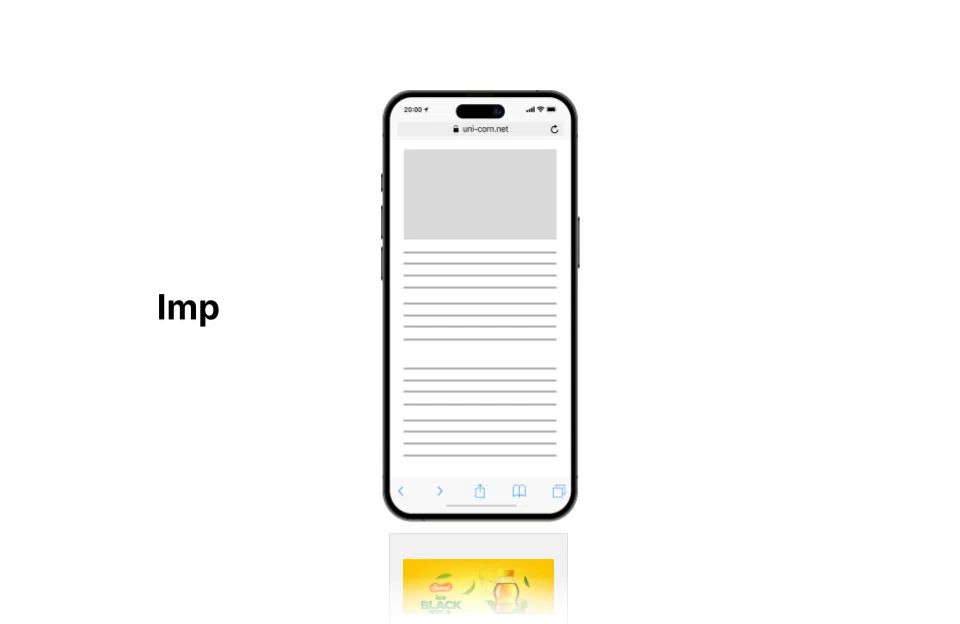 インプレッションは「広告がユーザーの画面に表示された数」として認識されていることが多いです。しかし、実際のインプレッションの定義は、「広告掲載ページが読み込まれ広告がレンダリングされた回数」つまり、ユーザーの画面の中に表示されていなくても、インプレッションとしてカウントされてしまいます。そのため、ブランドマーケティングで起こりがちな、CPMの安さ(1000インプレッション配信するのにかかったコスト)を追い求めることも本質的ではありません。