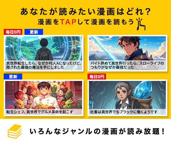 一つ目はマンガのサムネ画像を複数作品並べたデザイン、二つ目はマンガのコマ画像を1作品分のみ表示させたデザインです。